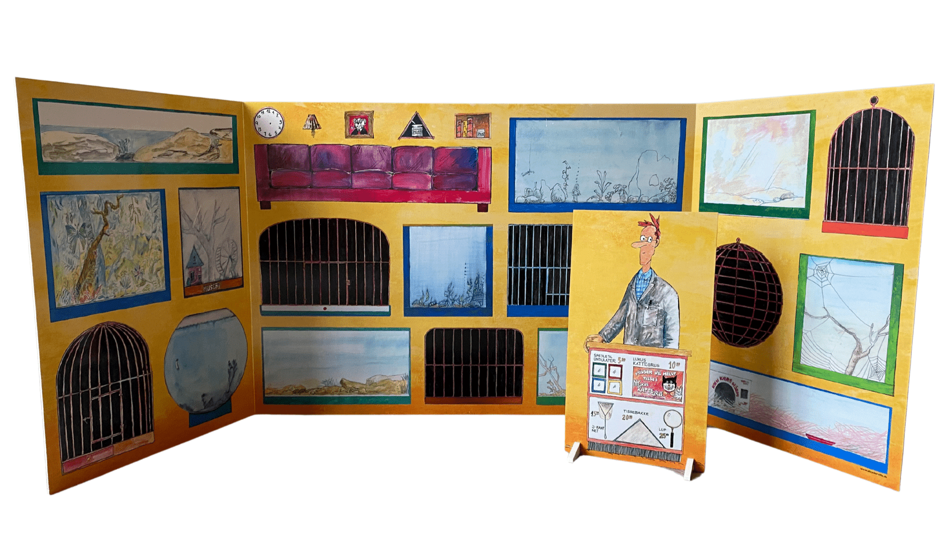 Når butikken er lukket, dvs. at yderfløjene er foldet ind mod midten, er målene 60 x 84 cm. De to yderfløje kan åbnes til hver sin side, så man kan kigge ind i butikken.