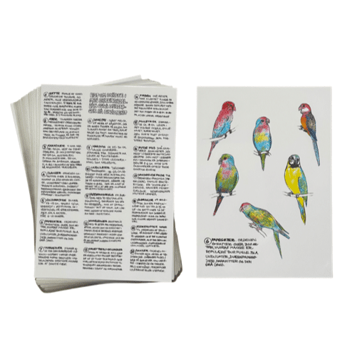 Laminerede ark med dyr 20 dyregrupper – 210 dyr i alt. Leveres i en kuvert med klippeanvisning. Her er også en lamineret oversigt med enkelte informationer om de 20 dyrearter, som underviseren kan bruge i sin formidling.