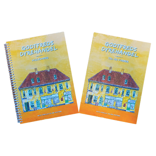1 stk. oplæsningsbog med historien Godtfreds Dyrehandel – tal for former. Bogen indeholder 24 illustrerede kapitler, i alt 54 sider, der skildrer miljøet i den hyggelige Smallegade, hvor Mustafa har sin kiosk og hvor Slikmutter har sin slikbutik. Den beskriver også, hvorfor Godtfred blev dyrehandler, og hvordan han og hans kone Sonja får butikken fyldt op med 20 forskellige dyrearter. Bogen er indtalt og kan downloades her fra siden – se højre spalte øverst.
