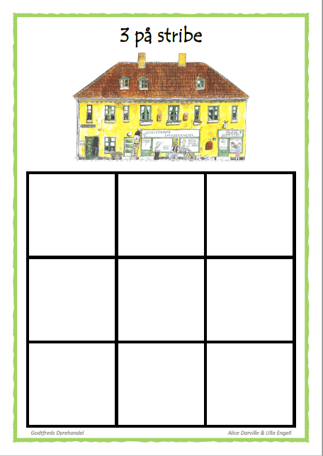 Det klassiske: Tre på stribe, kan også bruges når man skal øve tal og plusstykker. I den her udgaven kan to spillere eller to hold dyster mod hinanden. Hvert hold har tre ens spillebrikker. På skift trækkes et kort fra bunken. Den anden spiller skal læse/skrive/ eller vise tallet for den anden. Kan han det, må han lægge sin brik på pladen i et valgfrit rum. Nu er det den andens tur til at læse/skrive/vise et nyt tal fra bunken. Der spilles indtil en spiller har tre brikker på stribe enten vandret, lodret eller diagonalt.
