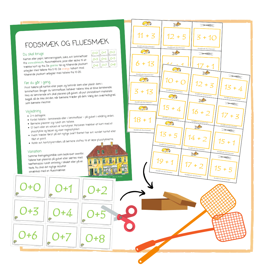 Du skal blot putte spillet i kurven, og derefter kan du downloade og printe spilleplade, talbrikker og vejledning. Klip og evn. laminer, så spillet holder længere.