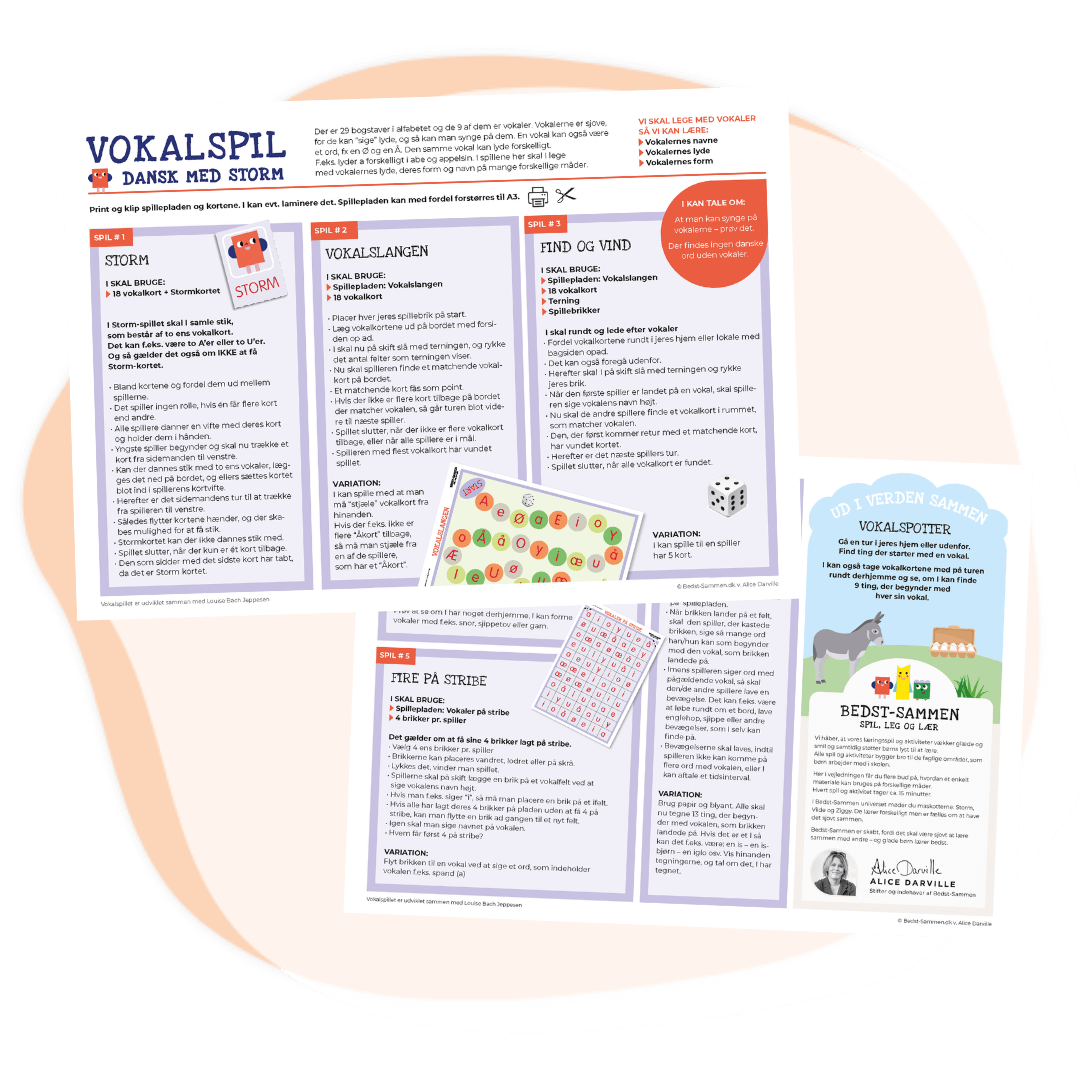 Med vokalspillet her, så får du forskellige spilleplader og vokalkort som kan kombineres på mange måder. Vi har givet vores bedste bud i den medfølgende vejledning.